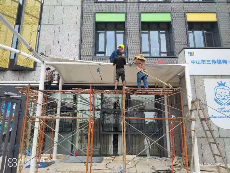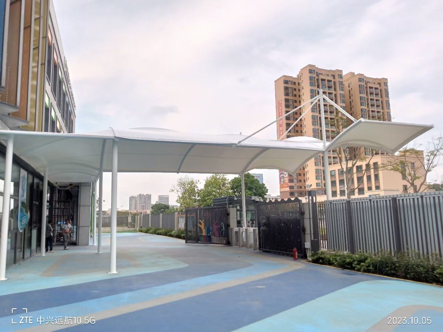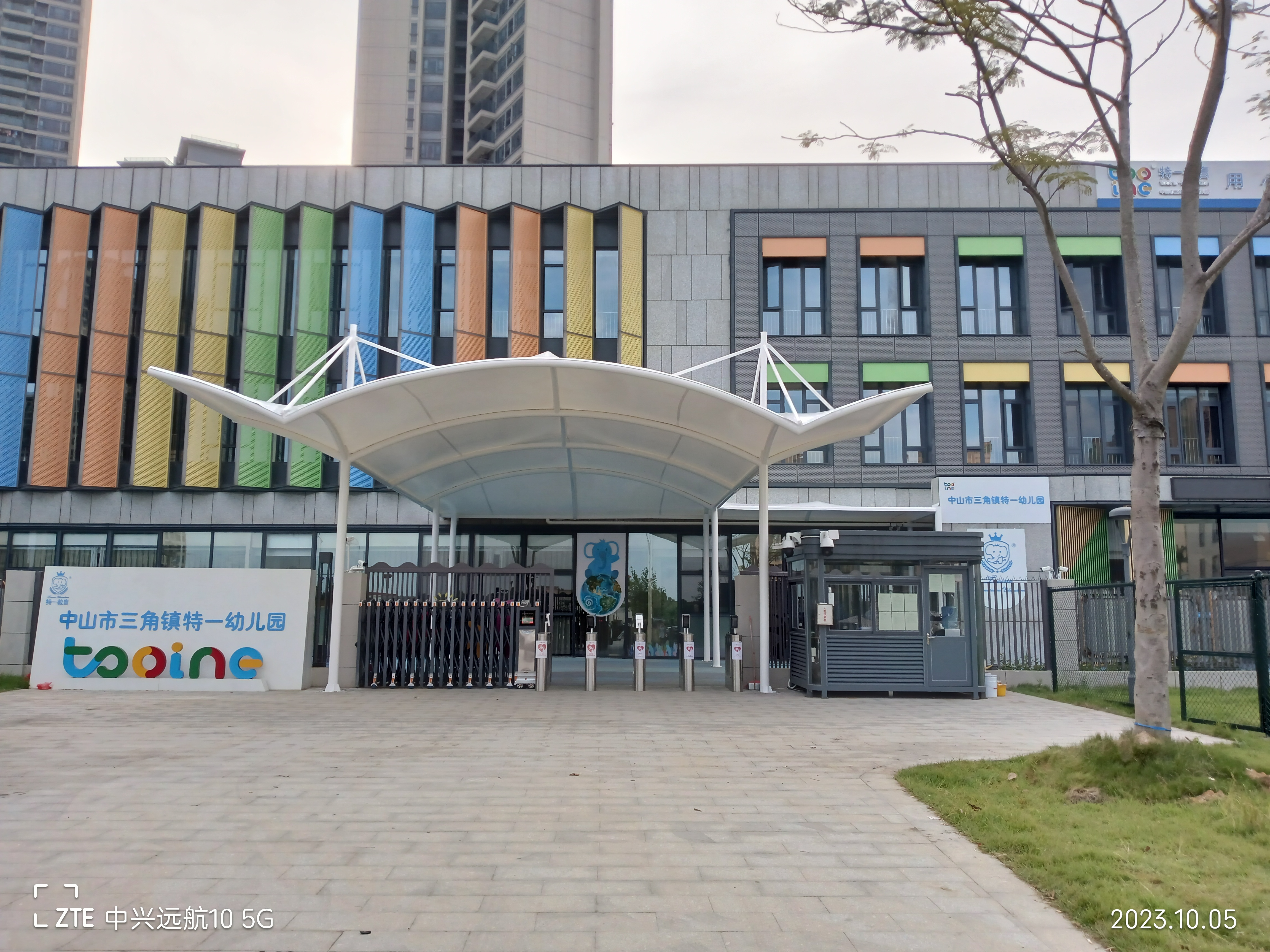 三角鎮(zhèn)特一幼兒園位于廣東省中山市三角鎮(zhèn)孝福路3號上筑雅苑,幼兒園大門口及通往教學(xué)樓雨棚采用膜結(jié)構(gòu)雨棚,案例如下: